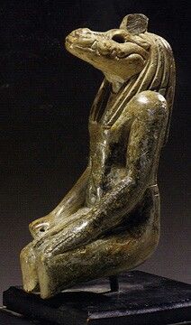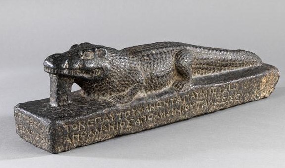 Steatite figure of Sobek, 304-30 BC595-589 BC, from Crocodilopolis (Louvre Museum)Counterweight for ritual necklace, amulet, 664 BC – 332 BC (Louvre Museum)Granodiorite State of the Petesouchos Crocodile, 80-51 BC, Crocodilopolis – Hellenic inscription which reads “year 23, 23 Pharmouthi, for the great king Ptolemy, god Neos Dionysus was consecrated with the image of Petesouchos, great god” (MET Museum)Late Period (Louvre Museum)